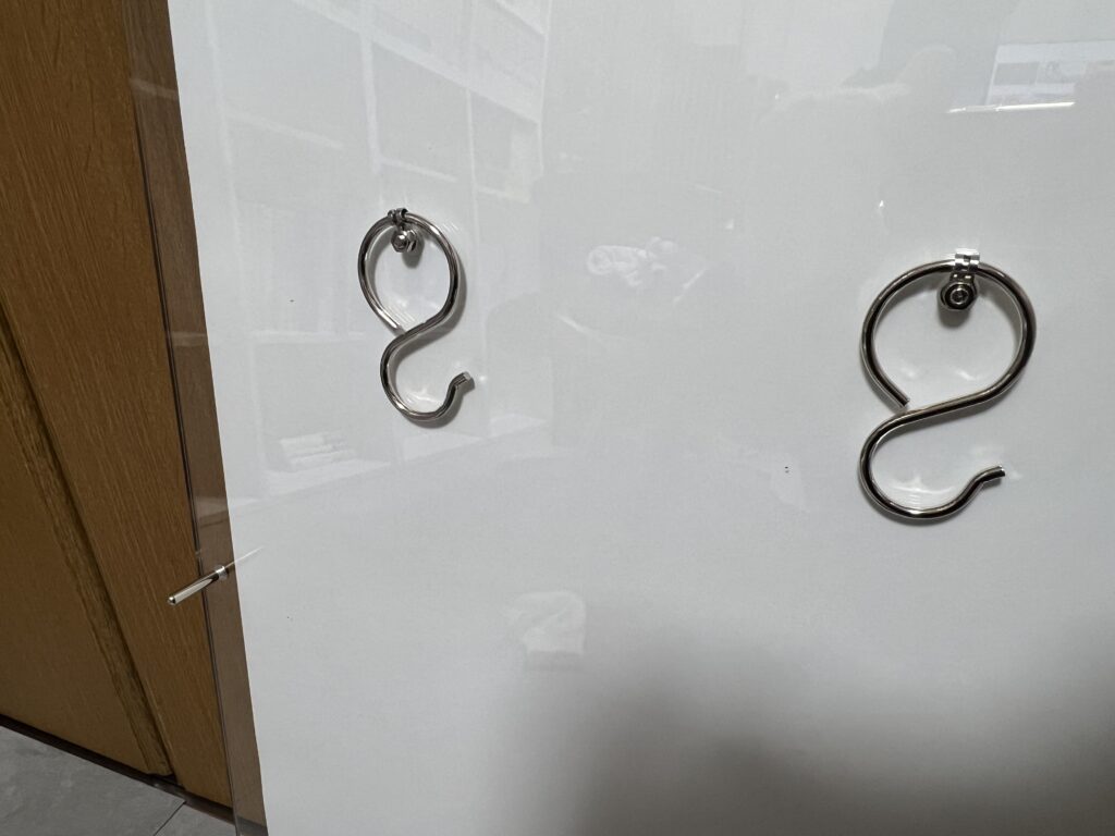 フロートタイプは裏面にs字フックがあり、予めビスなどに引っ掛ける形ですが、プロスタイルは4隅にネジが付属しており、壁面に穴を開ける形で固定します。