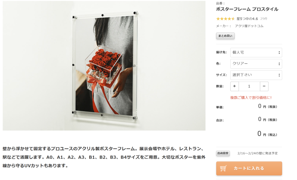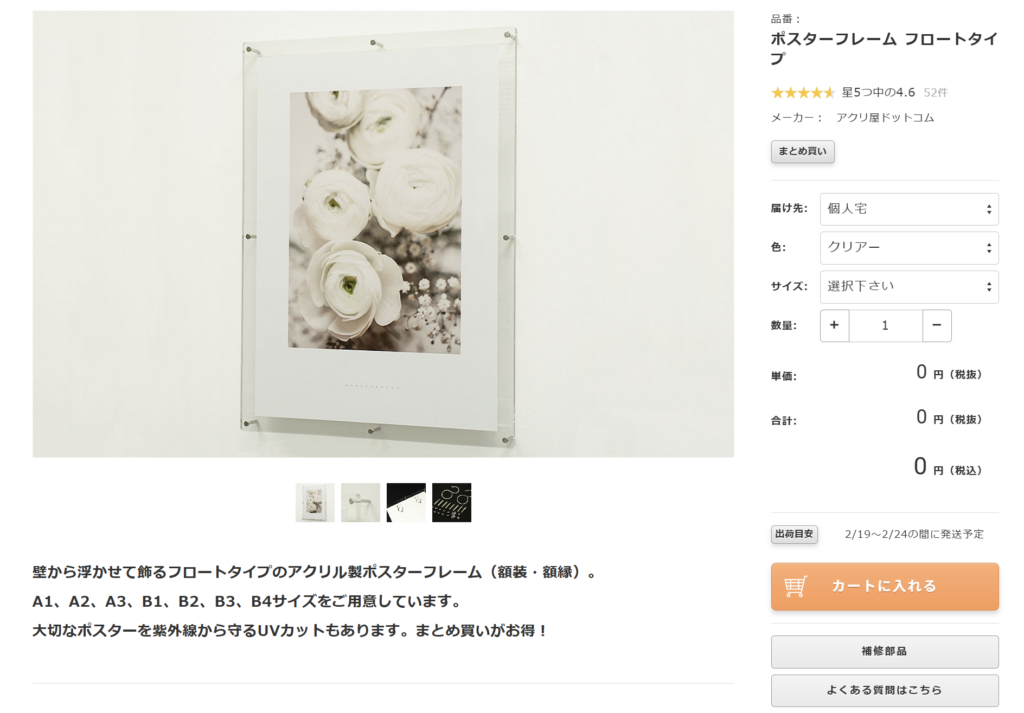 今回はアクリル製品専門店、「アクリ屋」でポスターパネルを購入してみたという記事でした。