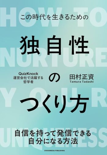 今回は登録者260万人越えの大人気Youtubeチャンネル、「QuizKnock」の運営会社で活躍する哲学者、「田村正資」氏が執筆された著書、「この時代を生きるための独自性のつくり方」を紹介していきたいと思います。